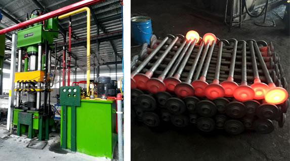 預(yù)墩機(jī)、擺輾鍛造機(jī)是我公司針對(duì)汽車(chē)半軸相關(guān)產(chǎn)品獨(dú)特開(kāi)發(fā)的特種成形設(shè)備,是國(guó)內(nèi)先進(jìn)的節(jié)能、節(jié)材、少無(wú)切削及機(jī)電一體化的高科技?jí)毫Τ尚卧O(shè)備。該設(shè)備具有投資小、耗能低、易維修、操作簡(jiǎn)單等優(yōu)點(diǎn),輾壓力僅為常規(guī)鍛造的1/15-1/10,較普通鍛錘類(lèi)設(shè)備具有效率高(提高3倍以上)、加工零件精度高、節(jié)約原材料、噪音低、振動(dòng)小等優(yōu)點(diǎn)。自擺輾鍛造機(jī)在我國(guó)正式生產(chǎn)和推廣以來(lái),現(xiàn)已為汽車(chē)半軸等生產(chǎn)企業(yè)和必備鍛造制坯設(shè)備,并為我國(guó)汽車(chē)半軸的鍛造加工做出了巨大的貢獻(xiàn)。