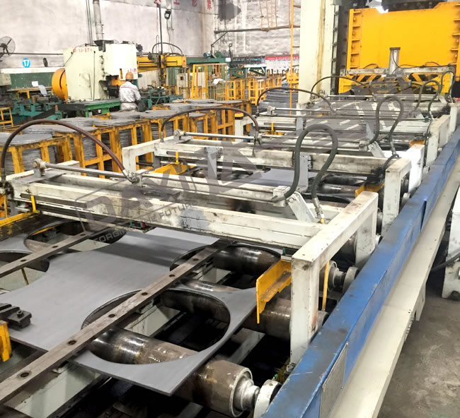 汽車鋼圈落料生產(chǎn)線是我公司針對汽車鋼圈行業(yè)定制開發(fā)的落料專用生產(chǎn)線,主要應用于汽車鋼圈行業(yè)的落料工藝,生產(chǎn)線包含落料專用液壓機、全自動滾輪送料裝置、步進式伺服送料機械手等高度機械化的裝置,可以完成送料、對中、位置檢測、落料、成品鋼圈輸送、廢料回收等工序,非常人性化,同時也大幅提高了生產(chǎn)效率。